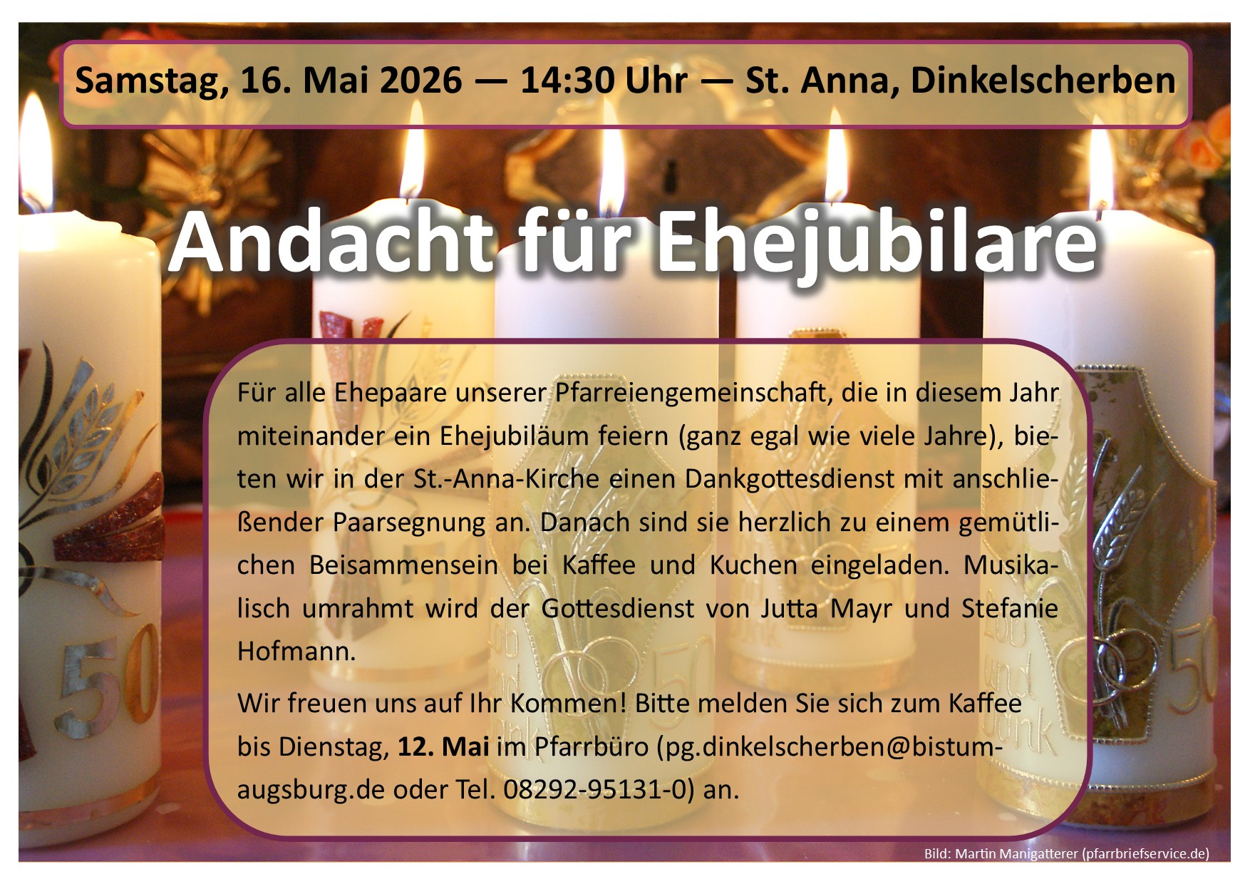 Andacht für Ehejubilare (16.5.)