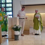 Am 11.08.2024 fand im Rahmen der Sonntagsmesse in der St. Simpert Kirche die Verabschiedung von Kaplan Michael Sommer statt. Trotz lichtdurchfluteter Kirche, standesgemäß sommerlicher Temperaturen und wunderbarer musikalischer Untermalung schwang bei den Danksagungen von Pastoralratsvorsitzenden Peter Holand und Pfarrer Florian Kolbinger mit Blick auf die vielen schönen gemeinsamen Momente ein Hauch von Wehmut mit. Bei der Entgegennahme der Geschenke aus dem Kreise der Ehren- und Hauptamtlichen schaute Pater Michael aber vor allem nach vorne und wünschte den Gläubigen der PG, dass der Zusammenhalt, den er erfahren durfte, auch künftig weiter wachse.
